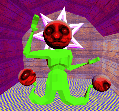Abraxas is the boss of Archon Grid and the final boss of the first ending. It is a giant sun-faced monster with long, gangly humanoid arms, a large expressive face, a spinning halo behind its head, and two additional spherical heads on the ends of its two "tails". It appears at the end of Archon Grid and must be defeated before the player can finish the mission.